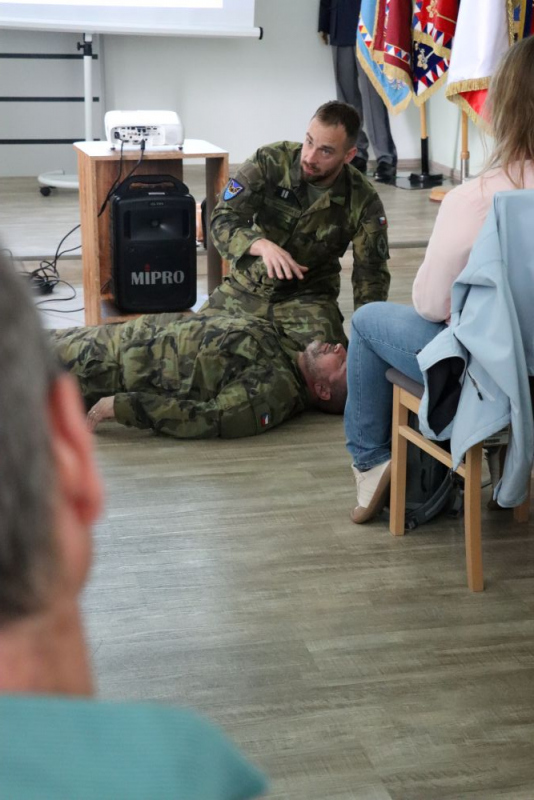 Součástí školení byla rovněž prakticky orientovaná prezentace zdravotní přípravy se zaměřením na specifika školního prostředí. Pedagogové získali cenné poznatky využitelné při řešení mimořádných událostí i při běžné výuce. Neméně důležitou částí programu bylo představení zahraničních operací Armády České republiky a přiblížení každodenního života vojáků nasazených v misích.